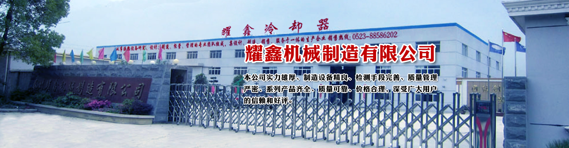 免費(fèi)咨詢方案 +泰州耀鑫機(jī)械制造有限公司座落于風(fēng)景如畫的江蘇魚米之鄉(xiāng)--全國文明城鎮(zhèn)婁莊鎮(zhèn),是一家專業(yè)生產(chǎn)風(fēng)冷卻器、列管式冷卻器、板式冷卻器的企業(yè)。本公司實(shí)力雄厚、制造設(shè)備精良、檢測手段完善、質(zhì)量管理嚴(yán)密、系列產(chǎn)品齊全、質(zhì)量可靠、價(jià)格合理,深受廣大用戶的信賴和好評。